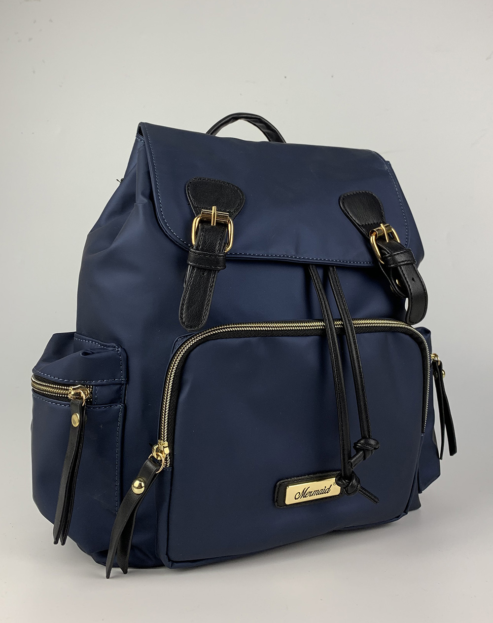 深蓝色防水布女士背包