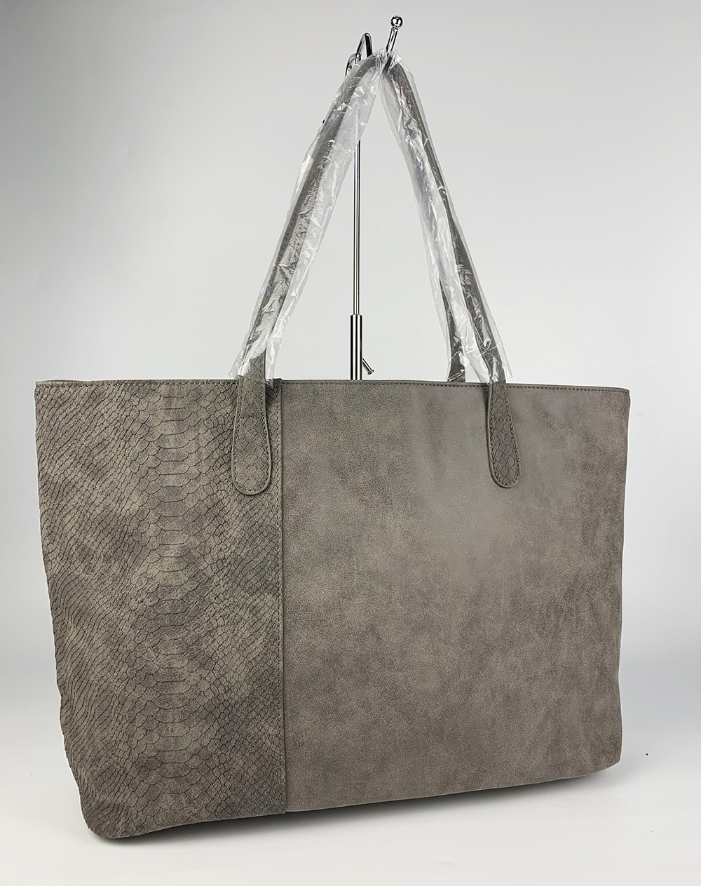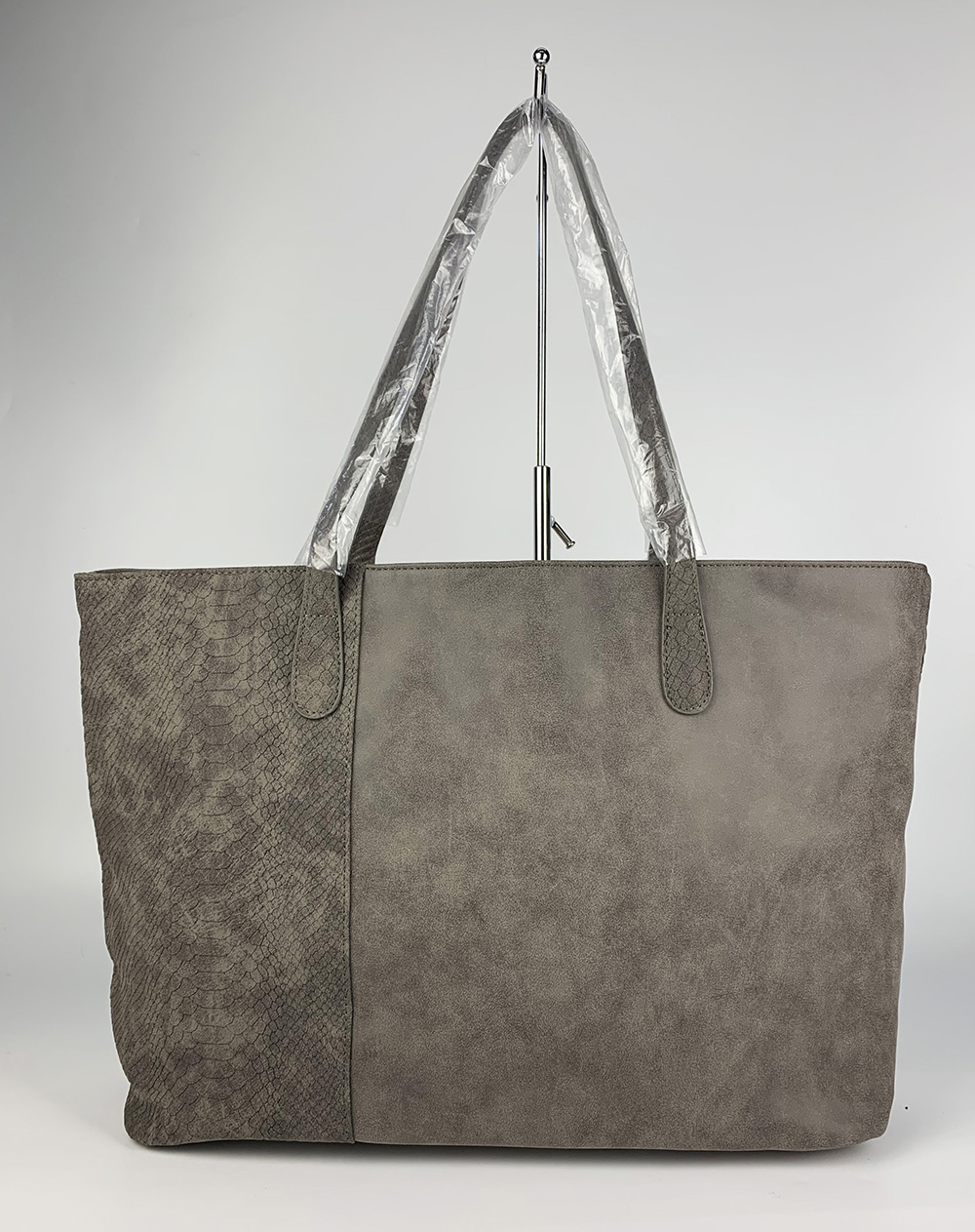 灰色PU提手袋