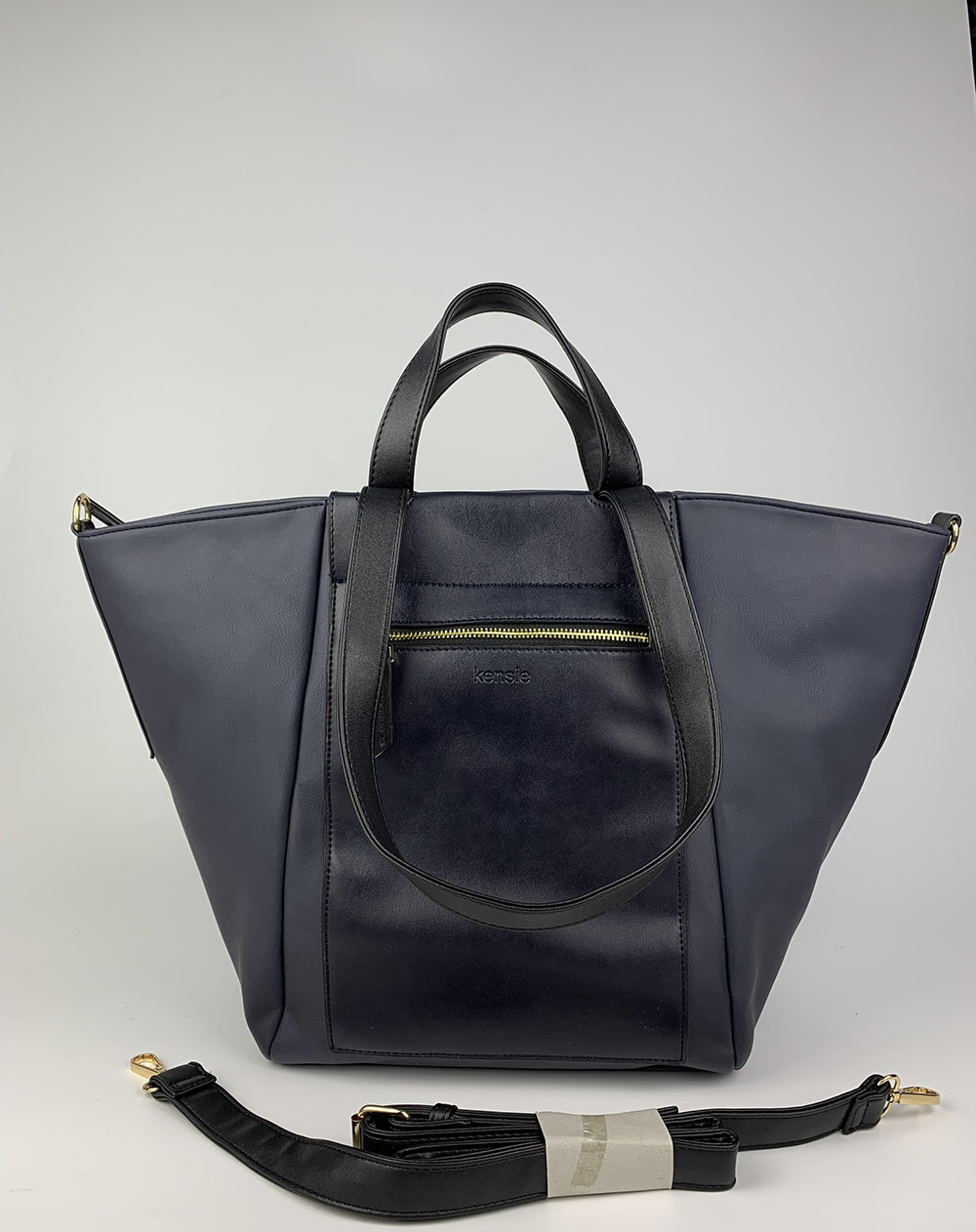 深蓝色PU单肩提手包